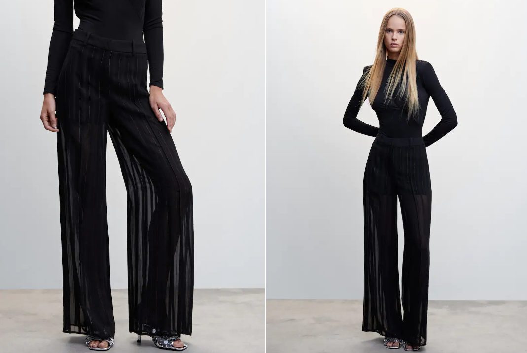 1Pantalón semitransparente con raya diplomática, el más elegante de Mango