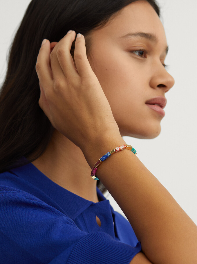 Como no destacar tu muñeca y tus manos en esta primavera, para hacerlo debes visitar alguna tienda Parfois y llevarte la Pulsera elástica con piedras, se ajustara en forma perfecta en tu muñeca y su colorido hará que el brillo de tu brazo resalte.