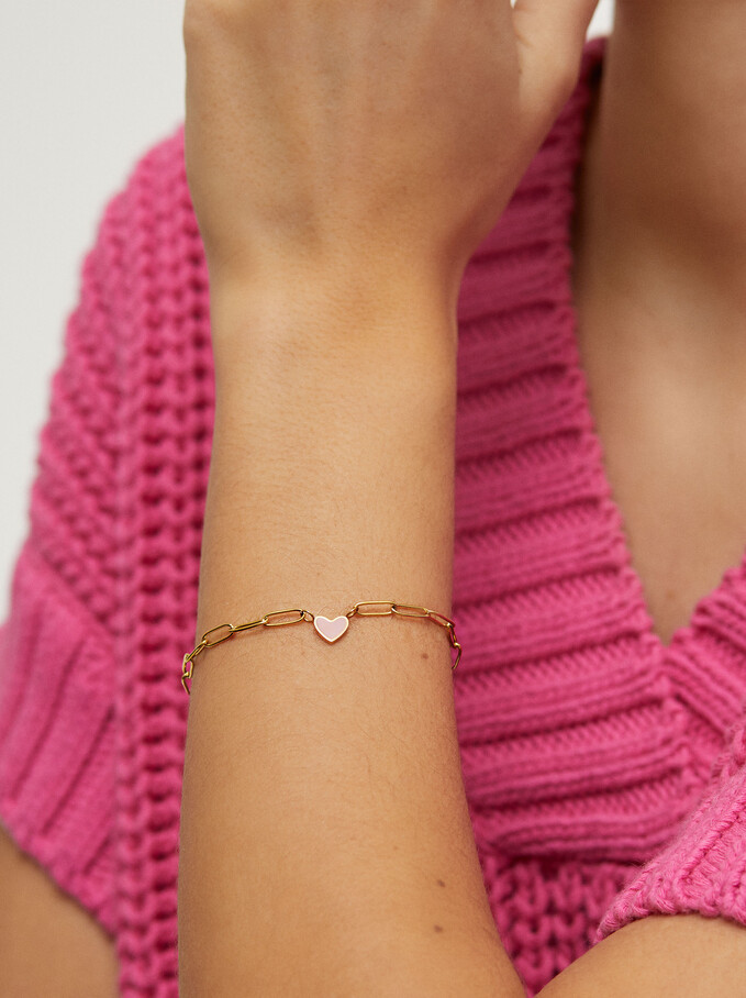 Ideal para obsequiársela a la dama que pretendes y que quede admirada por tu delicado estilo, al escoger una prenda para ella. Busca en las tienda Parfois la Pulsera ajustable de acero corazón. Sera el regalo ideal en cualquier fecha del año.