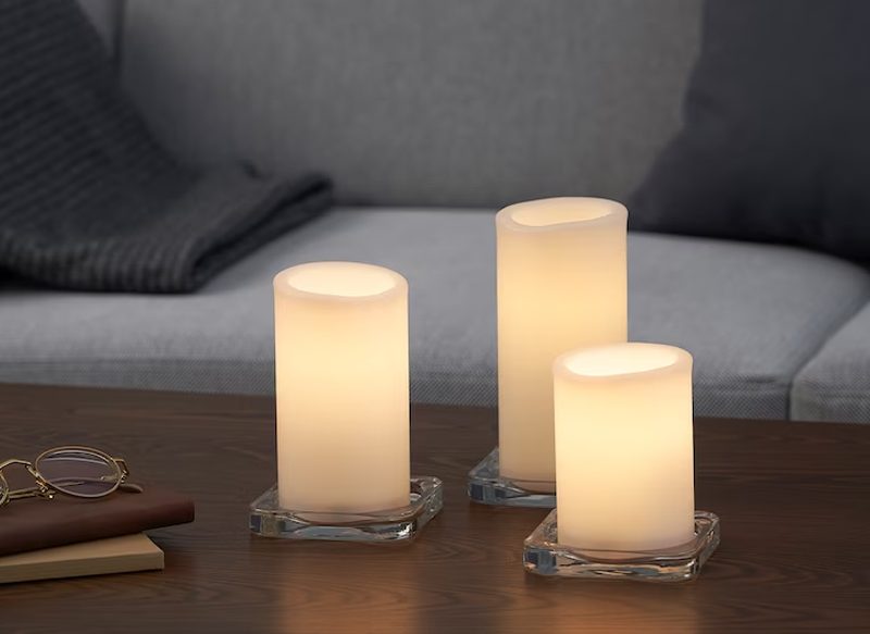 En la empresa de origen sueco nos ofrecen muchas posibilidades en lo relativo a iluminación decorativa, algunas de ellas tan versátiles como este juego de tres velas gruesas ADELLOVTRAD, cuyo precio de venta actual es de 15 euros.