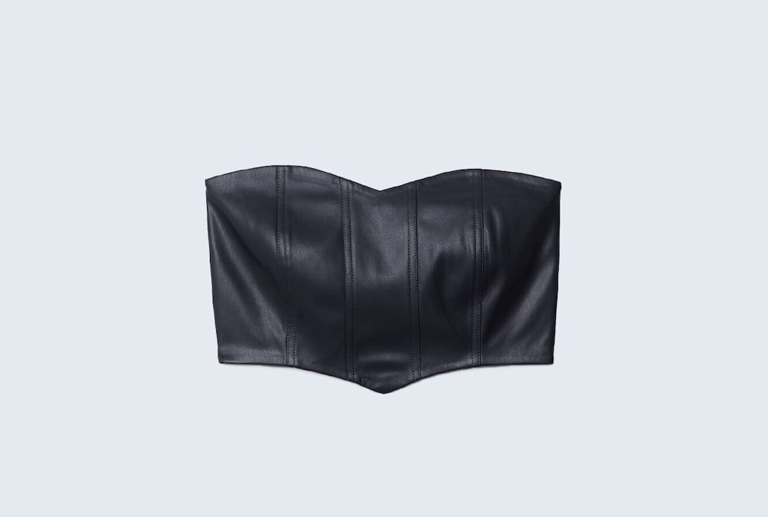 Otra de las prendas que no te querrás perder dentro de la sección de novedades de Stradivarius es esta. Se trata de un corsé de efecto piel, muy corto, que está disponible en color negro para que lo puedas combinar con todo. En cuanto a su precio, lo puedes conseguir en la tienda por solo 15,99 euros. Sin duda, una gran oportunidad.