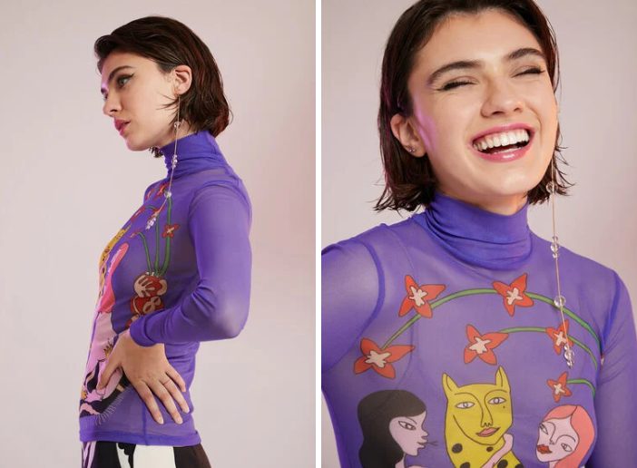 Terminamos con otra prenda de Desigual a mitad de precio, una en concreto válida para primavera pero que igualmente es ponible en estas fechas para combinar con abrigos y estar en interiores con las cenas, comidas y reuniones familiares que nos espera. No pasarás desapercibida con esta camiseta de rejilla slim de cuello alto, una vez más con una pintura diseñada por Miranda Makaroff especialmente para Desigual. Es de manga larga y cuello alto con estampado de vivos colores de dos mujeres desnudas con un tigre. La tienes por 39,98 euros.