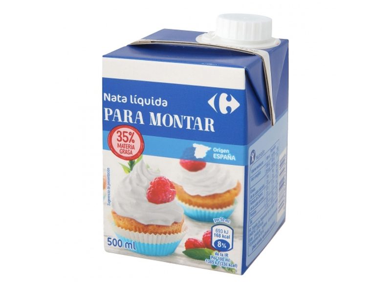 No todas las natas de montar son iguales, como sucede con cualquier otro producto, siendo en este caso algunas más complicadas de montar que otras. En este sentido, no sale bien parada la nata para montar líquida Carrefour, que se puede encontrar en sus establecimientos por un precio de 1,65 euros.
