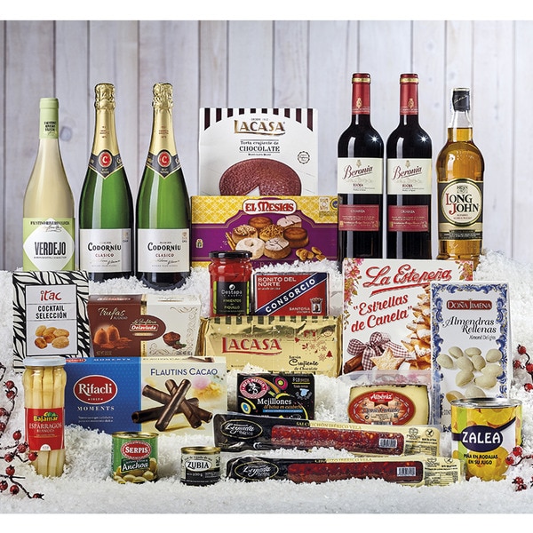 Si tu presupuesto ronda los 50 euros, puedes hacerte con uno de los surtidos para Navidad más completos que encontramos en El Corte Inglés. En este caso, la cesta se compone tanto de productos ibéricos como de dulces, por lo que gustará a todos.