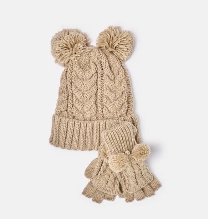 Vamos a arrancar este recopilatorio con las mejores ofertas y estás buscando regalos muy económicos con los que quede realmente bien, con este magnífico conjunto de gorro y que incluye unos guantes de mujer cozy y de estilo osito.