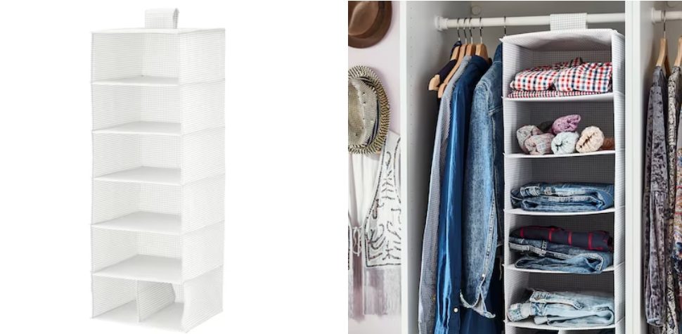 Seguro que tú también te has enfrentado al dilema de no conseguir tenerlo todo ordenado dentro del armario. De nuevo, en Ikea encontrarás una solución que aumentará el espacio de tu dormitorio. En este caso, se trata de un organizador con siete compartimentos, fácil de colgar, que podrás colocar allá donde lo necesites. Además, tiene un precio de tan solo 10 euros.