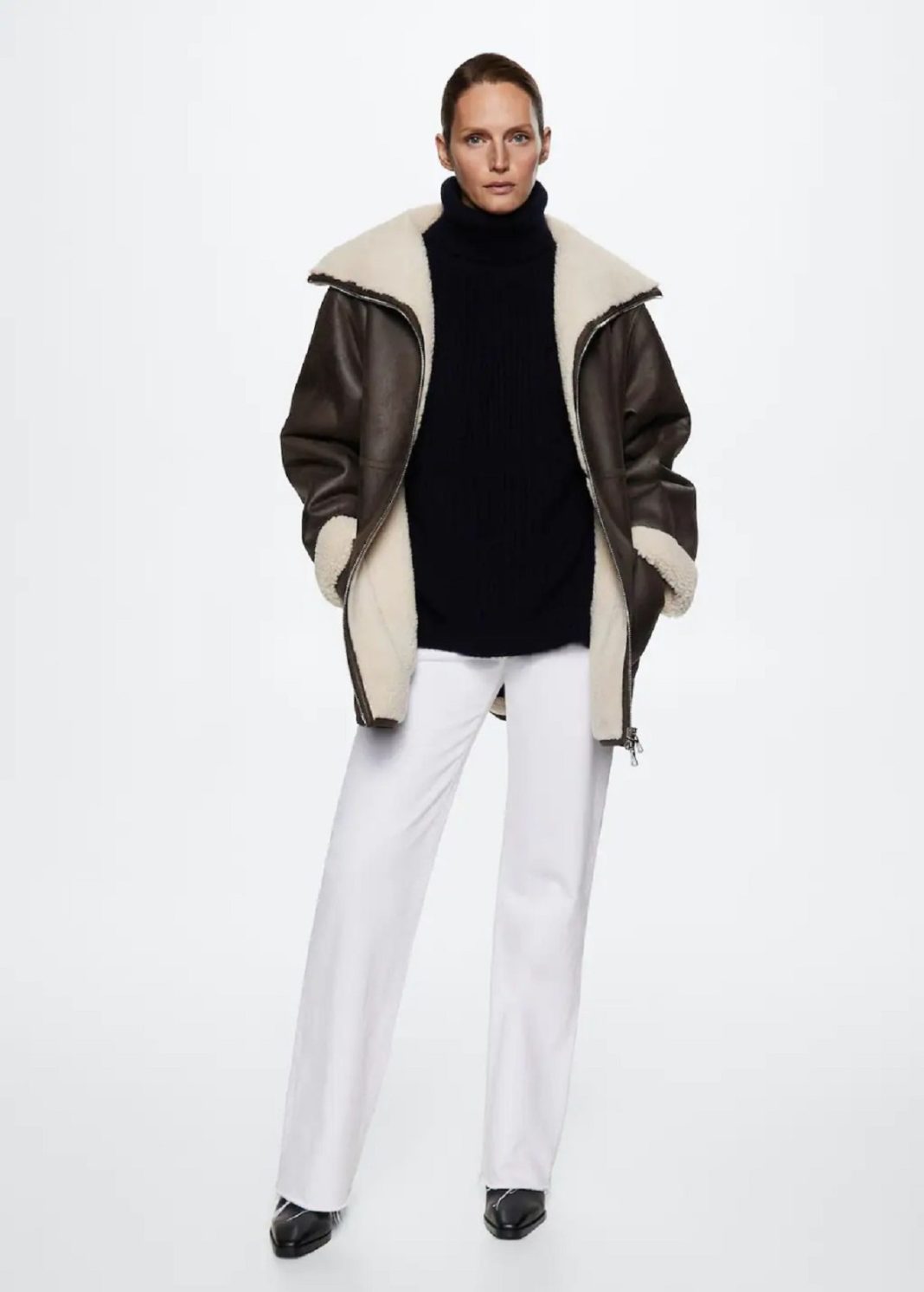 Todos los años vienen diseños como estos. Y, todos los años, dentro de un grupo de amigas, siempre hay alguna que lo tiene. ¿Por qué no ser tú? Si es un estilo que se renueva es porque funciona. Además, Mango tiene el abrigo interior de borreguito que desbancará a cualquier que tenga otra persona. Puedes ponértelo con o sin cuello alto y te da un toque cañero que ya le gustaría a más de una. Y, por si fuera poco, tiene piezas en negro y marrón. Cuesta 89,99 euros.
