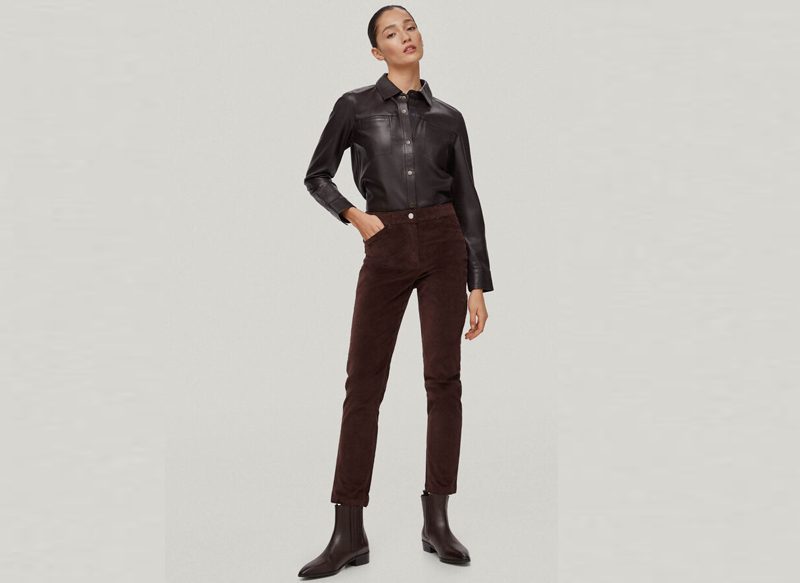 A la venta por 49 euros gracias a una rebaja del 51% (PVP original: 99 euros), es un modelo confeccionado en terciopelo de algodón y viscosa que ofrece una gran confortabilidad, y que usa en su composición algodón reciclado. Se trata de un pantalón de corte skinny y tiro medio, que posee bolsillos inclinados en el delantero y bolillos de ojal en la parte posterior.