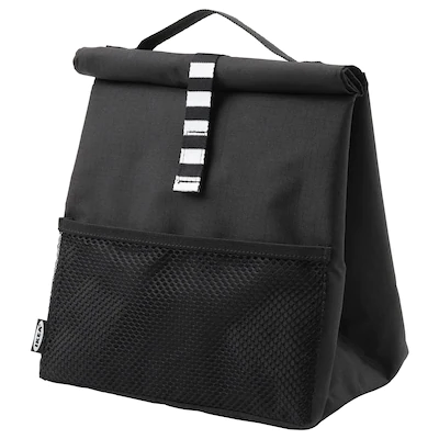 Aquellos que coman en la oficina encontrarán esta pequeña bolsa muy práctica. El diseño es sencillo pero muy cómodo, y tiene un compartimento interior con material aislante para conservar la temperatura de la comida. Está hecha con material resistente al agua, y cuenta con un bolsillo para cubiertos y objetos pequeños. Además, tiene unas robustas asas para transportar cómodamente. El precio en Ikea es de 7,99€.