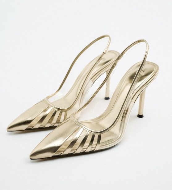El color dorado es siempre uno de los reyes de las fiestas. Por este motivo, estos tacones de Zara también se convertirán en los más elegidos. Con diseño medio transparente, acabados en punta y de tacón fino, podrás usarlos en cualquiera de tus eventos. Además, nunca pasan de moda. En cuanto a su precio, los puedes conseguir por solo 39,95 euros. Una gran oportunidad.