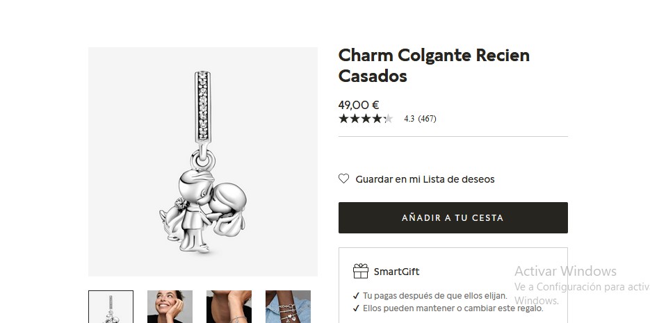 Es un Charm que representa a los recién casados y que está elaborado en plata de primera ley, inclusive podrán mantener el romanticismo de la palabra Sí, quiero con hermoso Charm. Por lo que, se ha convertido en una de las joyas preferidas por las personas cuando entran a la tienda. Para obtener esta hermosa representación de amor solo deben entrar a Pandora por un increíble precio de 49,00 €.