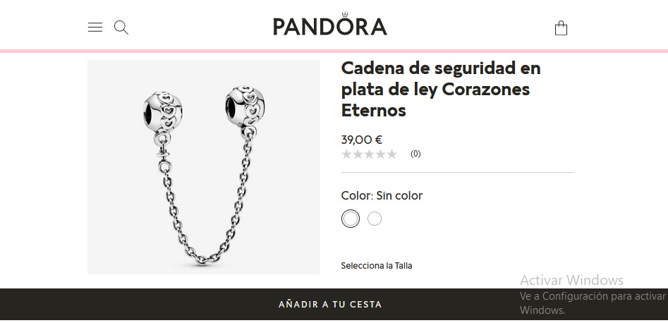 Es una hermosa cadena de seguridad que representa increíbles corazones que están elaborados en plata de primera ley. Esta es perfecta para añadir hermosos detalles que sean sofisticados a sus pulseras y, para que puedan mantener sus Charms seguros en sus sitios. Cuenta con colores sin color, además son compatibles con las pulseras moments. Por lo que, si desean obtener esta hermosa cadena solo deben entrar a Pandora por un precio de 39,00 €.