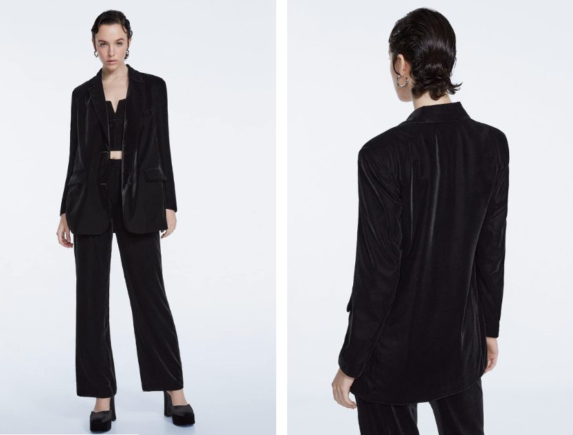 Te recomendamos otra prenda para esta Navidad, para esas comidas, cenas, celebraciones familiares y de trabajo. Es un americana de terciopelo con la que deslumbrarás en estos eventos sociales. Es un modelo de cuello solapa y manga larga, con detalle de bolsillos laterales. Rezuma estilo y elegancia, con ese aire cosmopolita que pega tanto para vestirte este fin de año. Y lo mejor, una vez más en Stradivarius, es el precio: 39,99 euros.