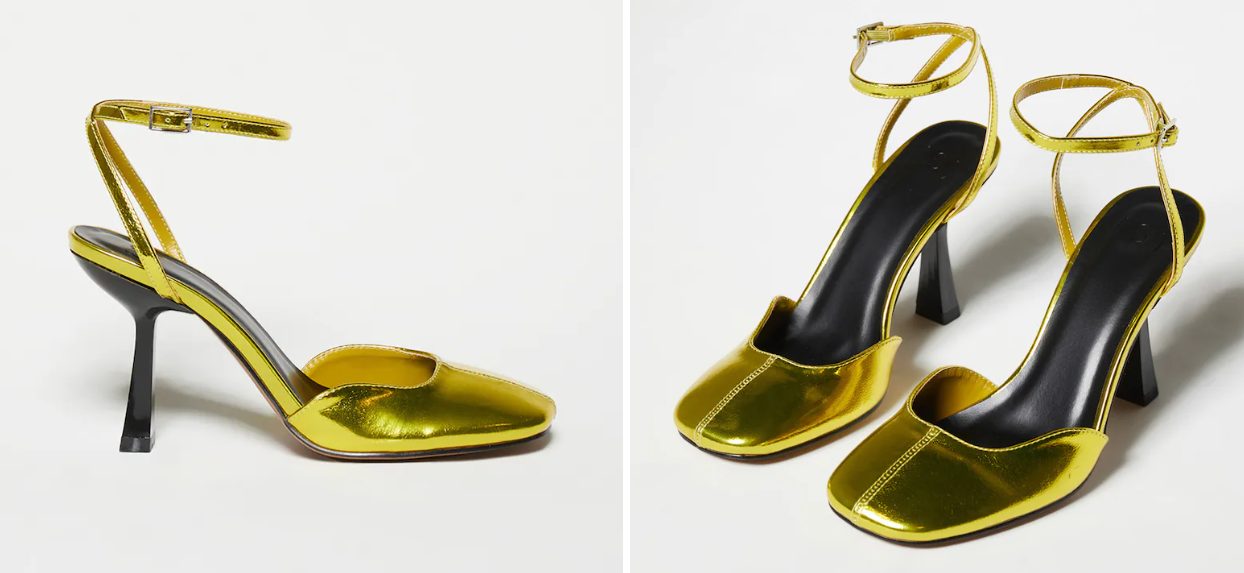 El acabado metalizado siempre es uno de los más efectivos debido a su capacidad para llamar la atención. En este sentido, unos de los tacones de Sfera que no podrán faltar en tu zapatero son estos. Con punta cuadrada, diseño de pulsera y un bonito color amarillo, te los podrás llevar a casa por solo 39,99 euros. Son perfectos para las fiestas.