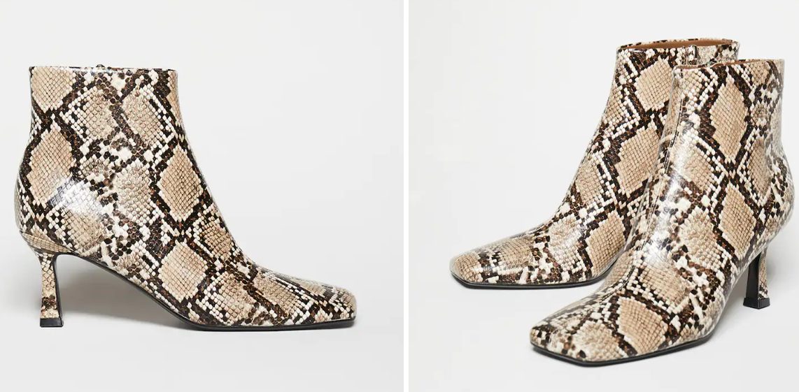 Otros de los botines de Sfera que no querrás que falten en tu vestidor son estos. De nuevo, el estampado de pitón es lo que más llama la atención de estos zapatos, que podrás usar tanto a diario como en las ocasiones especiales. De punta cuadrada y tacón bajo, además los tienes disponibles por solo 49,99 euros. Una gran oportunidad.