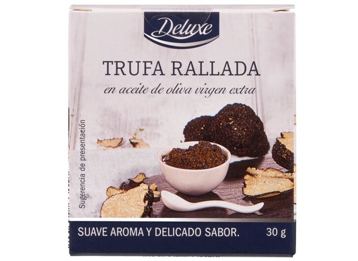Bajo su marca Deluxe, Lidl cuenta con numerosos postres muy apetecibles, entre los cuales también cabe mencionar su trufa rallada en aceite de oliva virgen extra. Ofrece un sabor delicado y un aroma suave y se vende por 2,99 euros en un formato de 30 gramos.