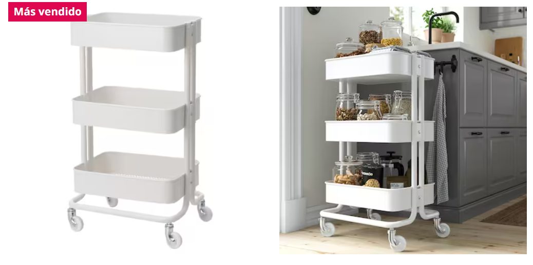 Cuando falta espacio en el comedor o en la cocina y no sabes qué puedes hacer para remediarlo, en Ikea también saben salir al rescate. Lo hacen a través de complementos como este carrito auxiliar, disponible en color blanco y en otros tonos, ideal para transportar lo que necesites gracias a sus ruedas. En cuanto a su precio, lo podrás conseguir por tan solo 39 euros.