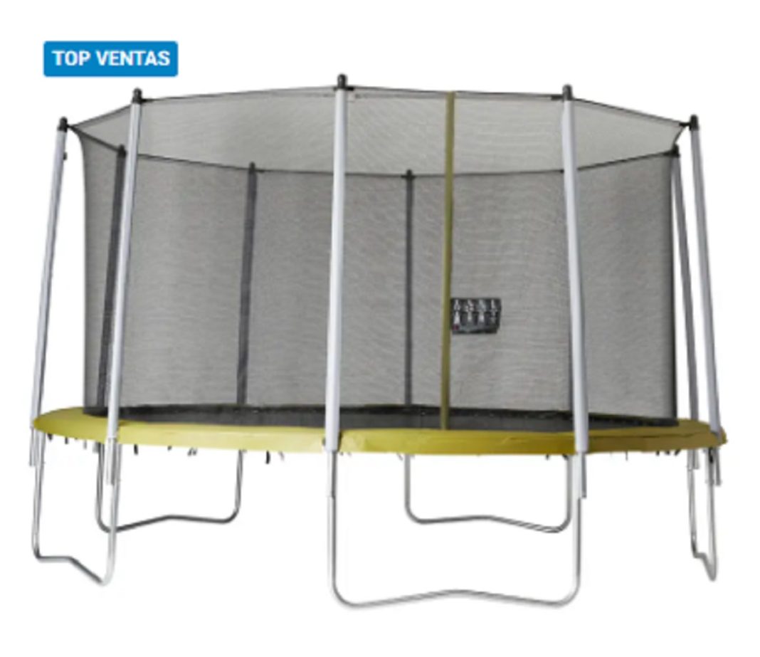 Si de algo puede presumir la cadena de grandes superficies es de tener variedad. Si no nos gusta un modelo, podemos encontrar otro de otro color o con diferentes beneficios. Por 369,99 euros, el usuario puede hacerse con una cama elástica con una estructura con tratamiento anticorrosión. Una superficie de salto, red y espuma antiUV. Posee protección contra golpes. Tanto niños como adultos se derriten al verla instalada en el jardín. Se puede pagar en cuotas.