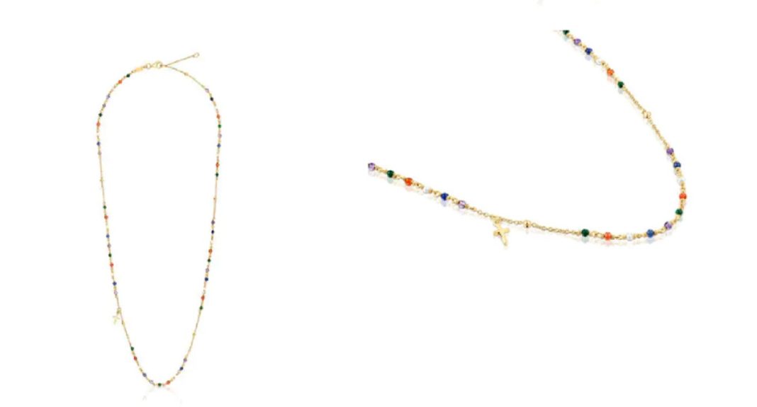 Tamara Falcó también ha pensado en aquellas a las que les gustan los colores, sin olvidarse de la cruz que tiene un importante sentido para ella. Combina de forma ideal con prendas blancas. ¿Qué tal una de tirantes blancas con vaqueros? Por muy desenfada que trates de ir, con este collar de Tous serás la más mirada y admirada del lugar al que acudas. Su valor es 169 euros. ¿En serio? ¡Ver para creer!