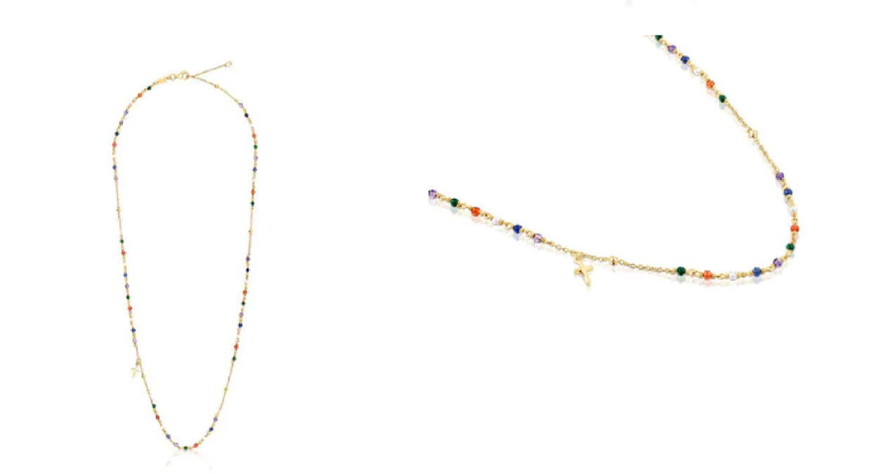2Tous: Collar rosario de plata vermeil con gemas y motivo cruz Tamara Falcó X TOUS