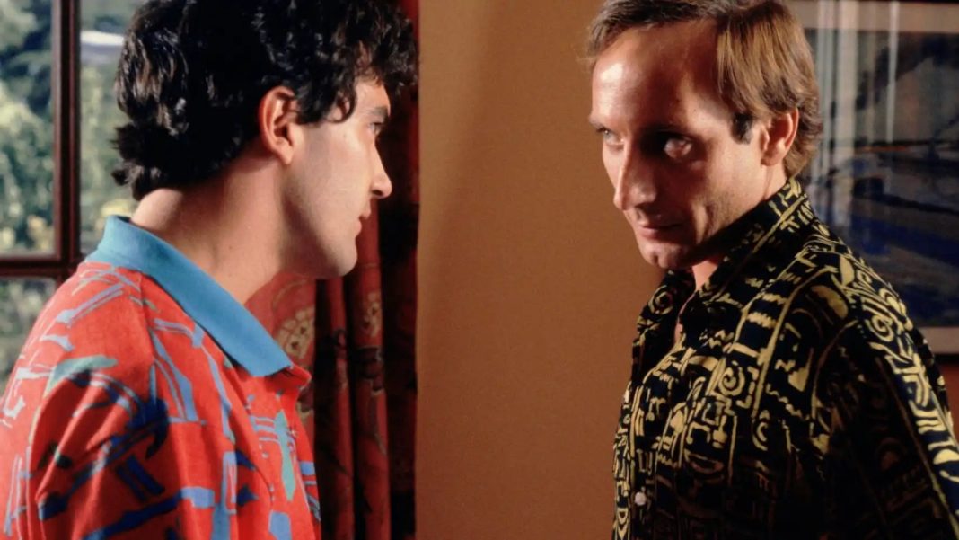 “La ley del deseo” fue uno de los mejores papeles que le aportó Pedro Almodóvar en los 80. Fue entonces cuando el mundo comenzó a verlo como un auténtico icono sexual. Ya se parecía más al Antonio Banderas que vemos a día de hoy, aunque con un aspecto abismalmente más joven. Pelo engominado, corbata y camisa. El productor ya dejaba de ser ese joven desenfadado para convertirse en un actor de fama internacional con “Mujeres al borde de un ataque de nervios” en 1988.