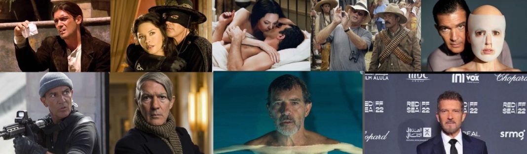 En la imagen que mostramos hay una recopilación de varias de las filmaciones que marcaron su vida. Se ve un cambio gradual en la vida de Antonio Banderas. Cada personaje sigue formando parte de él y ver escenas de algunas de las producciones en las que ha trabajado es un recuerdo vivo ante el mundo sobre por qué sigue siendo ese ‘sex symbol’ que comenzó su carrera hace añares. Algunas de las imágenes pertenecen a las siguientes filmaciones y están ordenadas por orden cronológico: “Entrevista con el vampiro”, “Desesperado”, “Evita”, “La máscara del Zorro”, “Pecado original”, “And starring Pancho Villa as himself”, “Shrek 2”, “Conocerás al hombre de tus sueños”, “La piel que habito”, “Los mercenarios 3”, “Genius: Picasso” y “Dolor y gloria”. Estas son solo algunas de las producciones más importantes de Banderas, un grande de la interpretación que ya es una oda a la juventud eterna.
