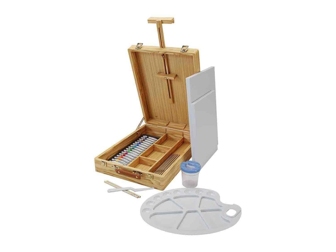 Un gran regalo puede ser aquel que fomente una vertiente artística en el receptor o ayudarle a avanza en su hobby. Si es la pintura, este es un regalazo, y ahora por solo 27,99 euros. Es un maletín de pintura con caballete de sobremesa, con soporte de altura regulable para el lienzo (hasta 70 cm) con ajuste continuo de la inclinación. Contiene 52 piezas, dos lienzos montados sobre bastidor de madera, 18 tubos de pintura acrílica, 10 pinceles de bellas artes, 2 lápices 2B, una paleta grande, una espátula, un vaso y 10 cuñas.