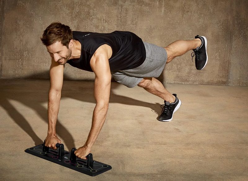 Es una tabla de flexiones multifunción que permite fortalecer diferentes grupos de músculos, estando pensada para que sea muy sencilla de usar y proteger las muñecas. Cuenta con dos agarraderas encajables en ranuras de distintos colores y doce posiciones distintas para hacer múltiples variedades de ejercicios.