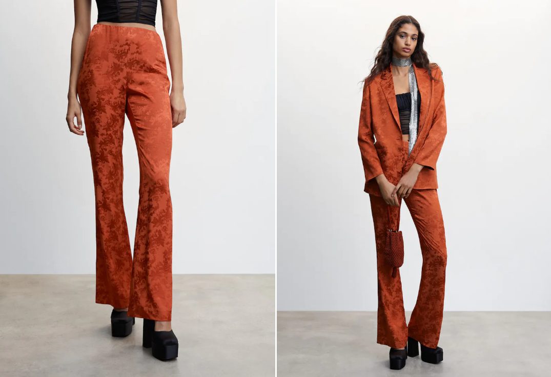Si buscas una prneda original que poderte poner para crear auténticos looks de infarto, estos pantalones de Mango serán tus favoritos. Realizados con estampado jacquard, llaman la atención gracias, además, a su bonito color naranja. Por otro lado, los tienes disponibles por solo 39,99 euros. También podrás encontrar la chaqueta a juego.