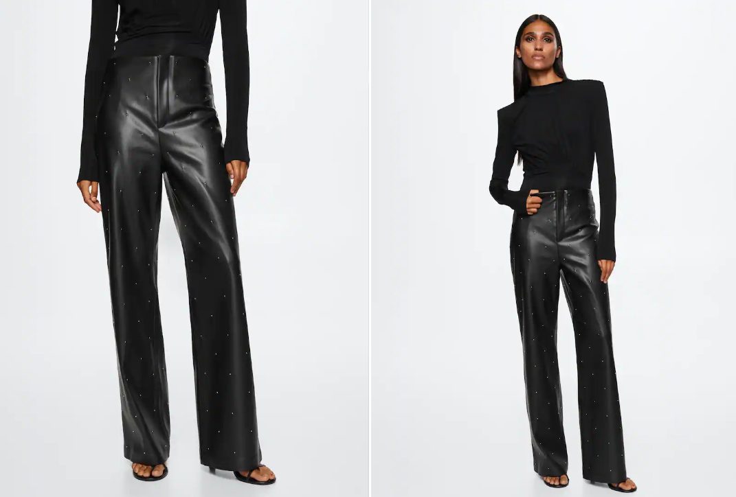 Estos son unos de los pantalones de Mango más buscados por todas las adictas a la moda. De corte recto, ligeramente acampanados y de efecto piel, el acabado de la temporada, además destacan gracias a estar repletos de pequeños brillantes. Una prenda ideal para destacar que te puedes llevar a casa por solo 39,99 euros.