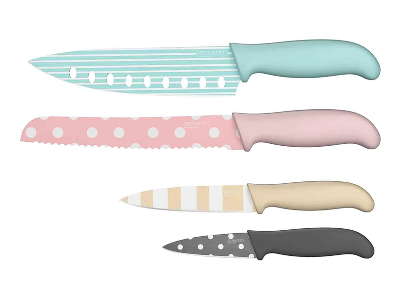Además, se trata de modelos que cuentan con mangos ergonómicos de plástico antibacteriano para mayor comodidad e higiene. En lo que respecta a las medidas de los cuchillos, nos encontramos con el el cuchillo de pan tiene una hoja de 20 cm; el cuchillo de cocina, 19,5 cm; el multiusos, 12,5 cm; y el de verdura, 8,7 cm. Estos cuchillos son aptos para lavarse en el lavavajillas.