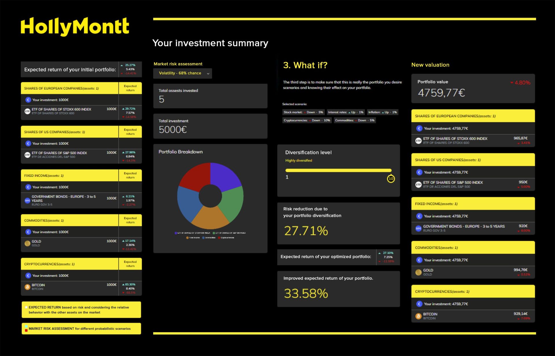 HollyTools es el 1er simulador Online diseñado específicamente para aprender a invertir con una cartera de activos financieros. Las HollyTools permite aprender practicando con herramientas avanzadas pero entendibles introduciendo los conceptos fundamentales para tomar decisiones de forma consciente y responsable en los mercados financieros.