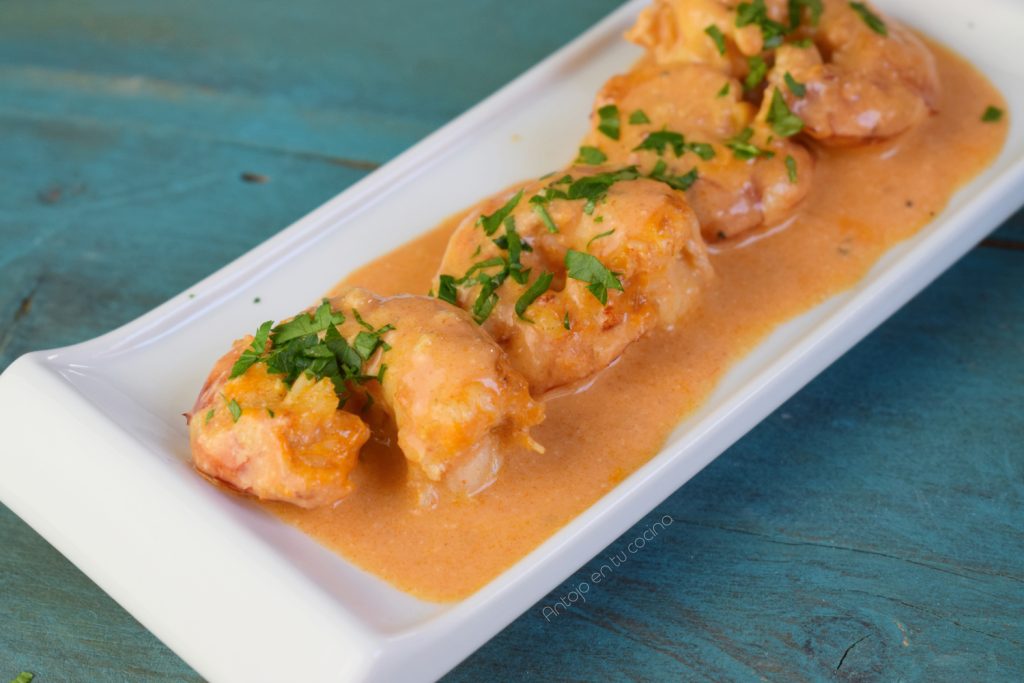 Cuando la salsa se haya reducido, apagamos el fuego y llevamos el contenido de la sartén a la batidora. Trituramos a potencia media durante unos minuto hasta obtener una crema fina. Después la pasaremos por un chino o un pasapuré para eliminar cualquier resto y que quede una salsa aún más fina. A continuación pasamos de nuevo la salsa a la sartén y la ponemos al fuego. Salpimentamos los langostinos que tenemos reservados y los vamos colocando en la salsa. Dejamos que se guisen unos minutos en la salsa de whisky y finalizamos espolvoreando con un poco de perejil picado. Ya estarían listos para servir nuestros langostinos al whisky.