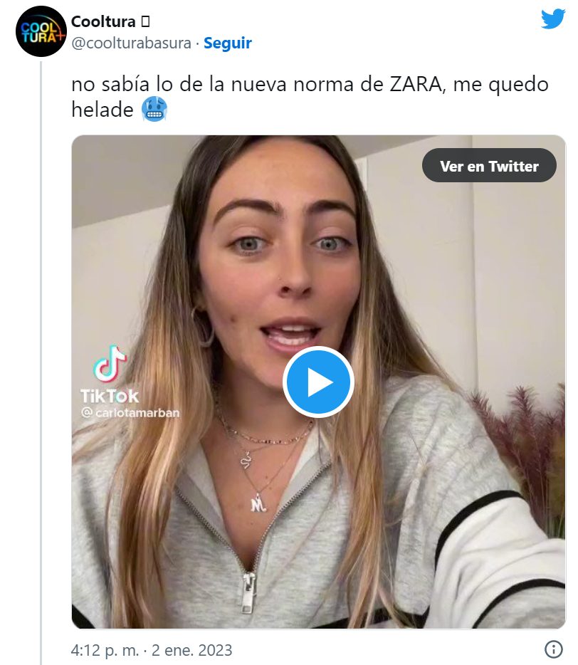5En Twitter hay opiniones en contra sobre la norma de Zara