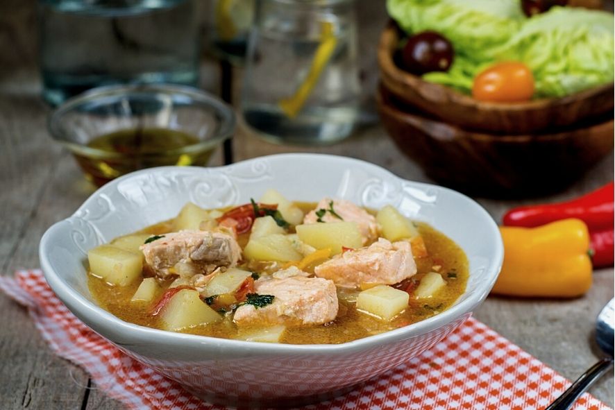 El marmitako es una receta popular de la gastronomía del País Vasco, aunque también se pueden encontrar en otras zonas del norte como Cantabria y Asturias. El marmitako más conocido es el de bonito, pero es un tipo de preparación que se puede hacer con otras variedades de pescado, como por ejemplo el salmón, que es la receta que vamos a proponer hoy.