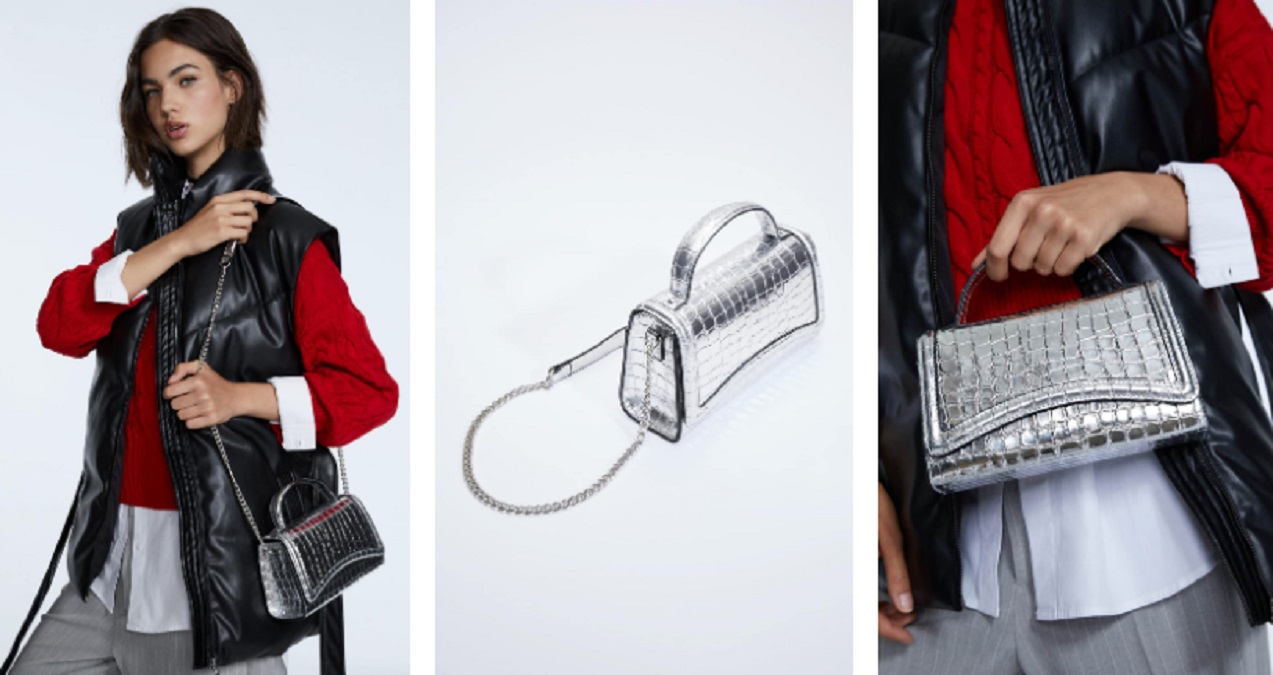 Nuestras madres y abuelas siempre nos advertían que fuéramos con los bolsos bandolera por la calle ante posibles tirones de bolsos, pero convengamos que llevándolos de esta forma no siempre lucimos lo que llevamos puesto. Esta es la razón por la que los diseñadores de Inditex crearon esta pieza para que puedas elegir el estilo que más rabia te dé, al mismo tiempo que vas ¡rompedora! Disponible en efecto plata y dorada, su precio es 9,99 euros tras un descuento del 38%.