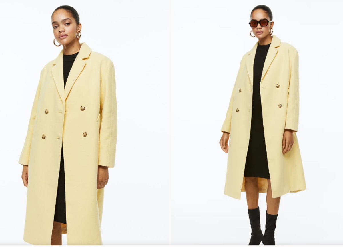 Si te gustó la gabardina que te enseñamos al principio, este abrigo doble botonadura te va a dejar flipando. ¿Tienes varias reuniones al año y quieres causar buena impresión en cada una de ellas? ¿Necesitas una pieza neutra que quede bien con la mayoría de las prendas que tienes en el armario? Obtendrás varias opciones seleccionando el modelo que más te gusta. Hay disponible en beige, amarillo claro y crema. Todos súper bonitos y elegantes. Cuesta 59,99 euros.