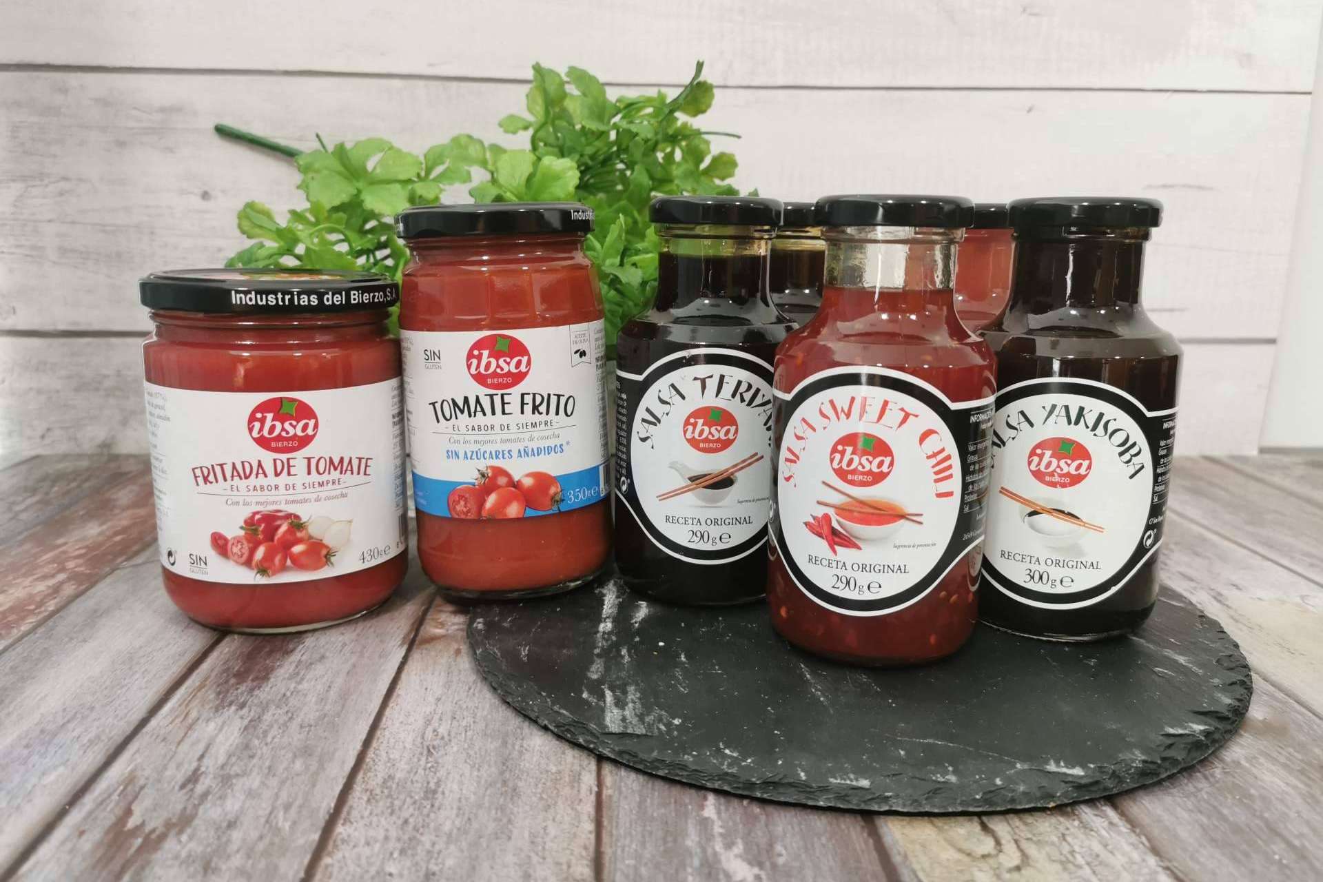 Esta empresa también cuenta con una línea de salsas de tomate que son un elemento tradicional de la cocina española. Por ejemplo, la salsa pisto con tomate se usa para diversos platos con arroz o pasta y también se emplea para acompañar salsas de carnes y pescados. Además de su ingrediente principal, este producto contiene calabacín, cebolla, pimiento y aceite de oliva.