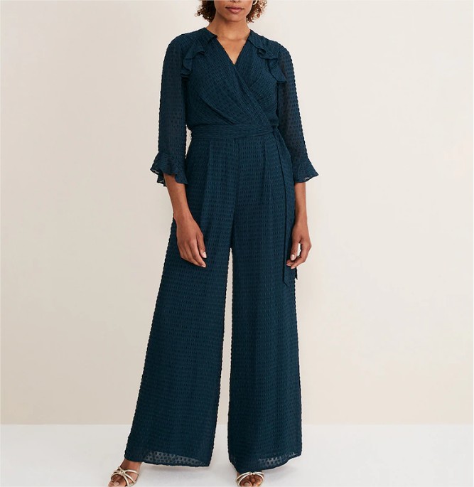 Y si buscas algo de corte más informal, este otro mono largo de manga francesa y volante es perfecto para tus necesidades.