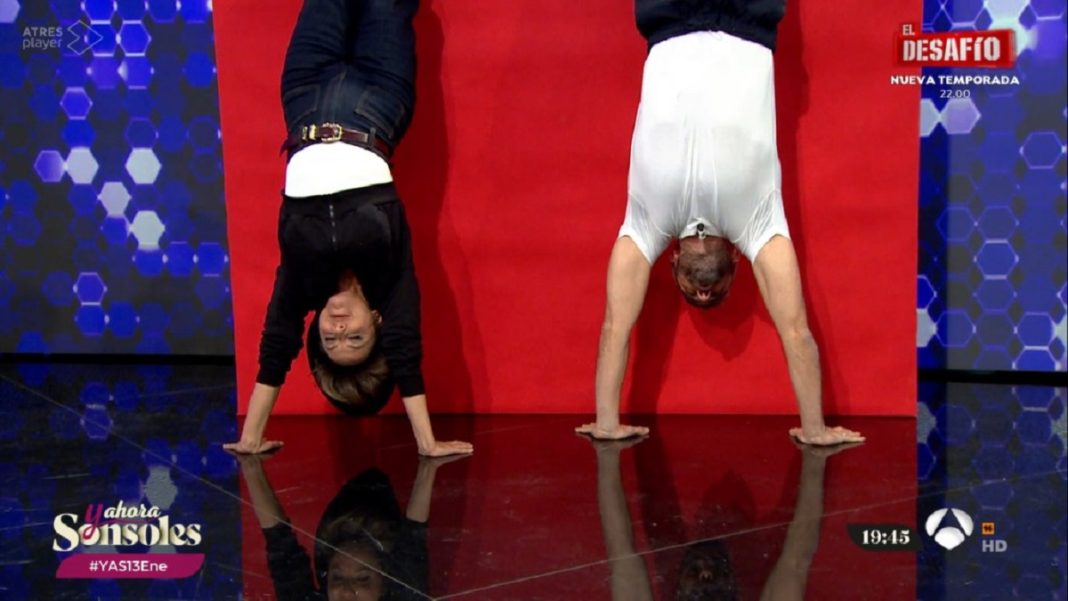 Roberto Leal no solo tendría que someterse a esta prueba, Sonsoles Ónega también le pidió que hiciera el pino. “Yo creo que la última vez que hice el pino fue en 1987”, alegó el conductor cuando su compañera de cadena le preguntó si sabía hacer este movimiento. “Yo te desafío a ver cuánto tiempo aguantamos haciendo el pino”, soltó la antigua figura de Telecinco. “¿Tú haces mucho el pino habitualmente?”, quiso saber Leal. “Un poco”, respondió Ónega.