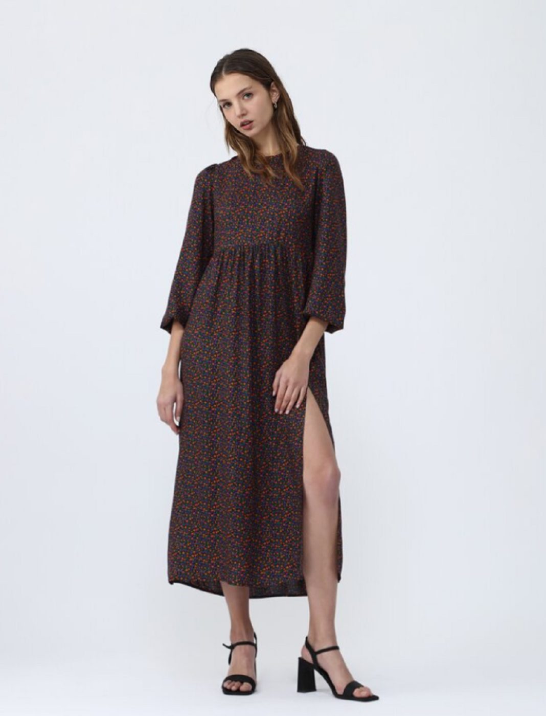 Lefties tiene este maravillo vestido midi que no puede ser más versátil. Posee escote redondo, manga larga y cinta a tono en la espalda para un ajuste óptimo. Está hecho de un cómodo tejido fluido de viscosa. Cuenta con una apertura lateral que termina de enamorarnos completamente. Su largo permitirá que no pases frío y la apertura le dará ese toque diferente que no tienen otros diseños. 17,99 euros y será tuyo. ¡Un chollo total!