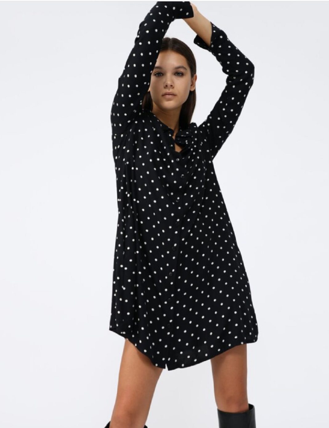 Seguimos jugando con los largos. De un largo total del primer modelo al corto anterior, ahora pasamos a un vestido por encima de la rodilla. No se puede negar que este vestido de Lefties tiene personalidad por sí solo. Las botas altas le dan un toque invernal total, pero no escatimes en lucirlos también con sandalias o pantalones bajos en otra época del año. Empieza a soñar con esta pieza majestuosa por tan solo 12,99 euros.