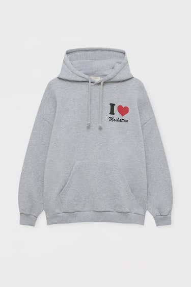 La sudadera es otra de esas prendas imprescindibles prácticamente en cualquier época del año. En Pull & Bear ahora tienes la oportunidad de hacerte con este diseño cn capucha y cordón ajustable, y el clásico bolsillo tipo canguro en la parte delantera. Es de color gris, fácil de combinar y lleva un print en el pecho con la leyenda ‘I love Manhattan’. Es de poliéster y algodón y lleva un suave forro interior para hacerla más agradable. Si te gusta, puedes conseguirla pro 9,99€.