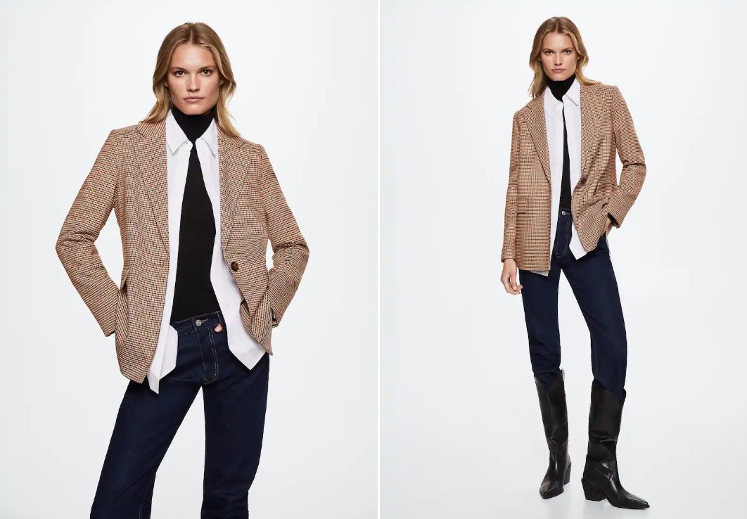 Las americanas de pata de gallo siempre son una buena opción. Mucho más, si se trata de un básico como esta de Mango. Realizada con un estampado muy fino y terminada con un tono neutro muy fácil de combinar, se convertirá en tu favorita para los días de oficina. Además, ahora te la puedes llevar por tan solo 27,99 euros en lugar dee 49,99.