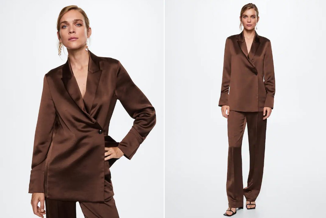 Si lo que buscas es vestir bien y destacar como la más sofisticada, otra de las chaquetas de Mango que no querrás que falten en tu armario es esta. Se trata de una americana e diseño cruzado, acabado satinado y un bonito tono marrón chocolate capaz de captar todas las miradas. En cuanto a su precio, ahora te puedes hacer con ella por tan solo 19,99 euros en lugar de 69,99. Un descuento del 71%.