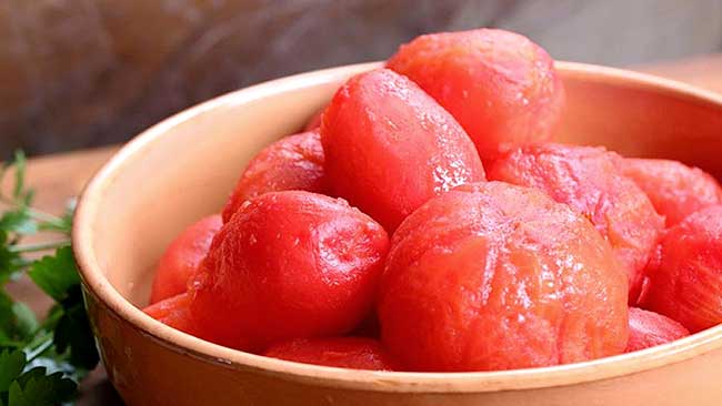 Su truco es poner el tomate durante 5 segundos en agua muy caliente. Inmediatamente después, los echa en agua fría, cortando así la cocción. Gracias a esto, la piel se despegará muy fácilmente del mismo, pelándolo sin que se dañe. Para ello, simplemente ten una cazuela con agua caliente y otra con agua fría y podrás hacerlo tú mismo.