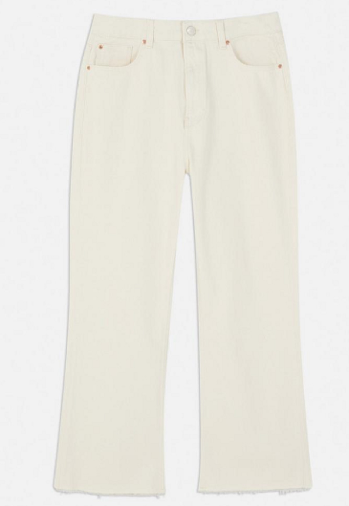 Primark tiene este estupendo vaquero tobillero acampanado blanco que queda súper bien para aplicar luminosidad al cuerpo. Queda espectacular al combinarlo con prendas de colores llamativos como el fucsia o el amarillo y otros más oscuros. No te olvides de pillarte también un buen cinturón que genere un corte en medio del cuerpo. No tendrás nada que envidiar a las ‘influencers’ en redes sociales. Vale 19 euros.