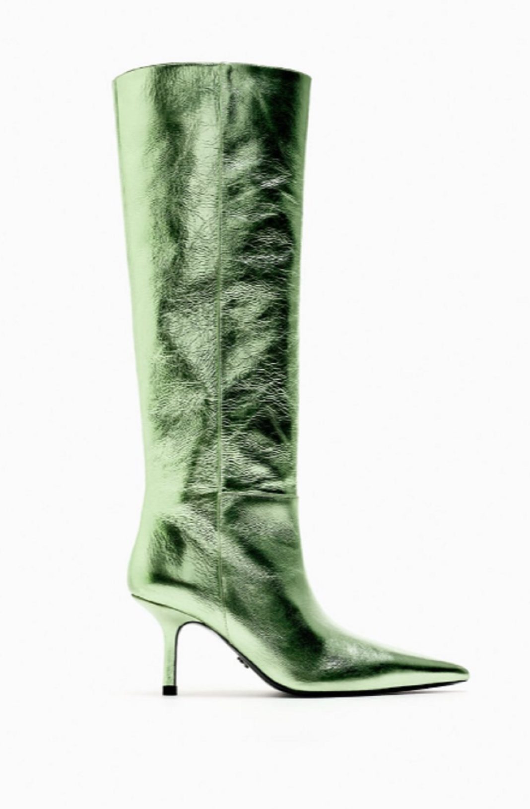 Las botas altas siempre consiguen generar impacto ya que muchos no se las esperan y logran que las piernas parezcan más largas. Zara ha optado por sacar este modelo de piel metalizada que genera reacciones desde el primer momento. Es perfecto para esos eventos en los que pasar desapercibida ¡no es una opción! Vale 139 euros y ya se nos está haciendo la boca agua.