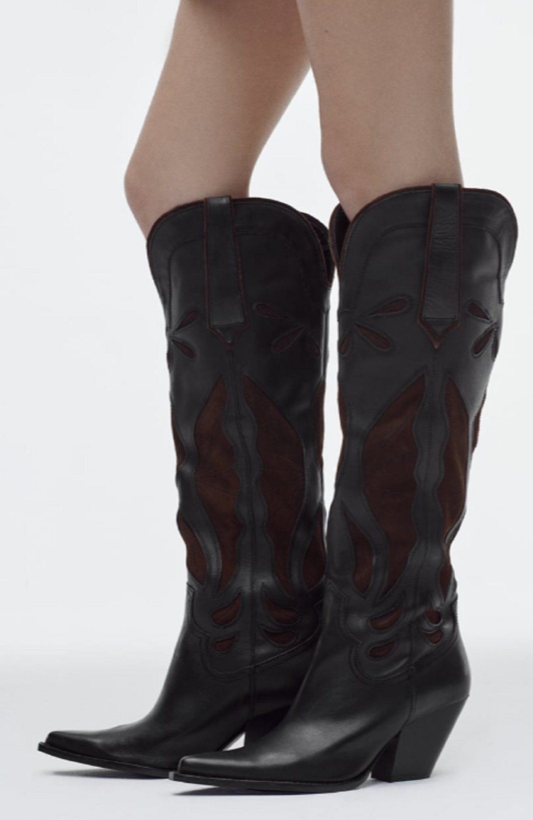 Esta bota cowboy es una cosa de otro planeta. Han combinado el serraje con la piel logrando un resultado colosal. No es el típico negro soso, pero tampoco se sale mucho de los estándares básicos por lo que podríamos elegir esta pieza como parte de nuestro fondo de armario sin problema alguno. La altura de su tacón es de 7 centímetros. ¿Preparada para brillar? Tener una sensación de poder indescriptible está a tu alcance por tan solo 139 euros.