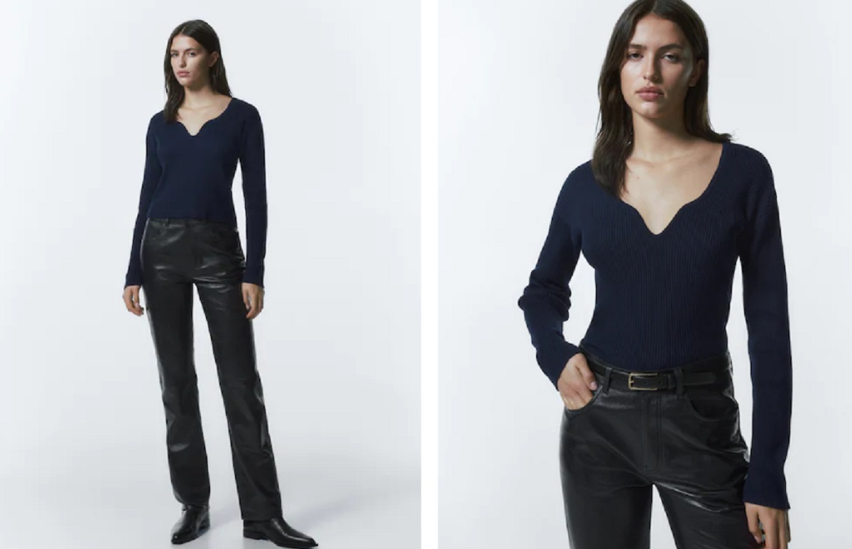 Si estás cansada de llevar siempre jerseys que lleva a todo el mundo porque los has comprado en una tienda súper barata, quieres algo diferente bonito recatado y elegante, Massimo Dutti tiene este jersey canalé con un detalle en el escote efecto mariposa que te va a quedar de lujo. Además, cuenta con un descuentazo con el que no vas a poder decir que no. Antes estaba a 59, 95 €, después bajo 25,95 euros y ahora tiene la rebaja de las rebajas con un 65% y queda en 19,95 €. O sea, sería como si estuvieras comprando un jersey en Bershka. Está en color azul oscuro y morado. No tienes ninguna excusa para decir que no a la que va a ser tu nueva marca favorita.